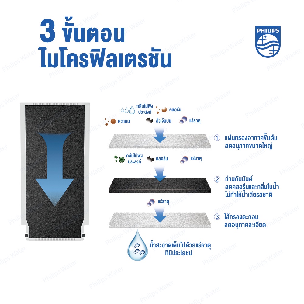 คุณสมบัติ: ระบบการกรอง X-Guard 3 ขั้นตอน กรองน้ำได้ 1000L.